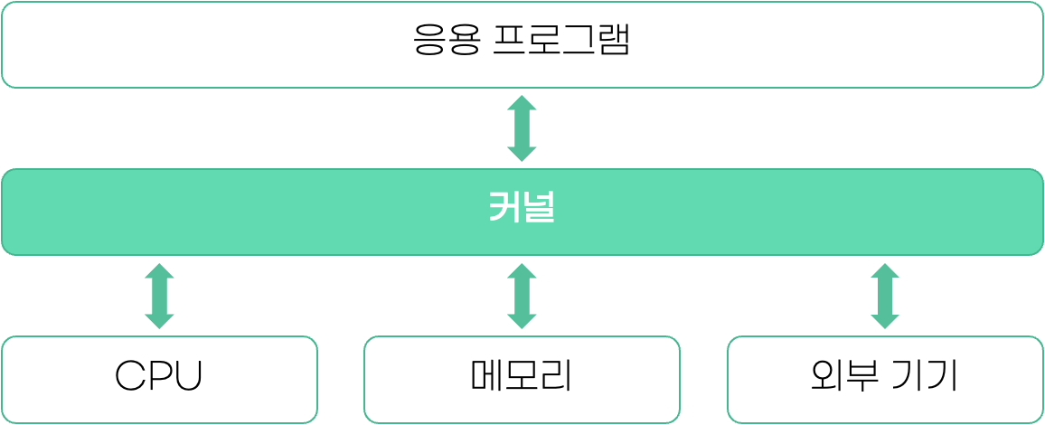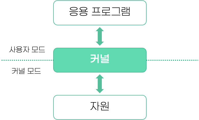 - 커널 모드: 하드웨어에 직접 접근해 메모리, CPU와 같은 자원을 사용할 수 있음.