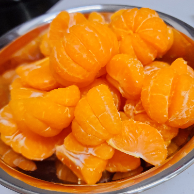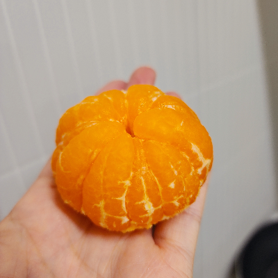 껍질 벗긴 귤 귤 껍질을 하나하나 까 준다.