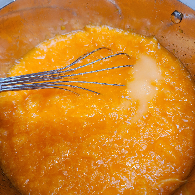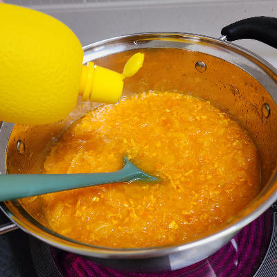 귤즙 졸이기 끓기 시작하면 계속 저으면서 졸여 준다.