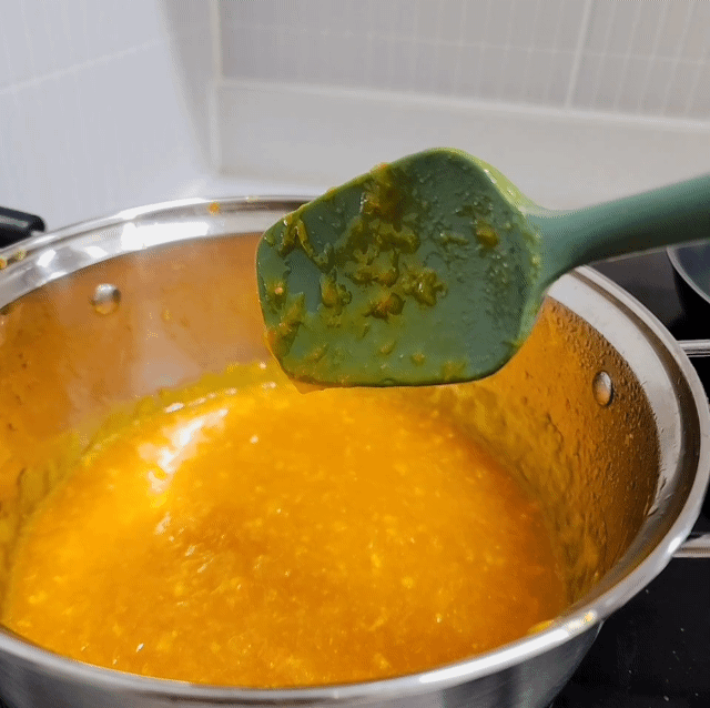 호박죽 정도의 농도가 된다면 그만 끓이고 천천히 식혀 준다.8. 병에 담고 뿌듯해하기