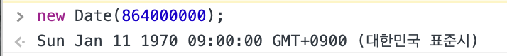 인수를 전달하면 전달된 인수에 해당하는 시점의 날짜 및 시각을 가지는 Date 객체를 반환한다.