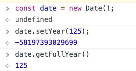 Date 객체에 연도를 설정할 때도 마찬가지로 .setYear()가 아닌 .setFullYear()를 사용한다.