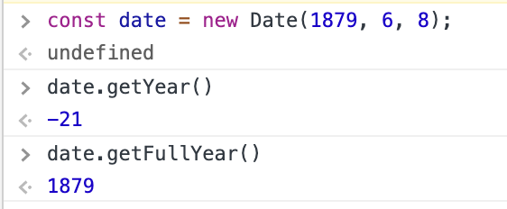 .getFullYear() 메서드는 현재 연도인 2021의 값을 반환하는 반면 .getYear() 메서드는 121의 값을 반환한다.